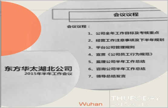 會(huì)議由平臺(tái)公司黃波主持,分上下兩個(gè)半場(chǎng)。上半場(chǎng)首先由傅火箭代表平臺(tái)公司通報(bào)公司及各部門全年工作目標(biāo)及考核重點(diǎn);代偉才代表經(jīng)營(yíng)中心作《經(jīng)營(yíng)工作中的注意事項(xiàng)及下半年經(jīng)營(yíng)工作規(guī)劃》;隨后由黃波、陳勇分別代表管理中心、總工辦宣貫《平臺(tái)公司管理規(guī)則》和《公司員工行為規(guī)范》。下半場(chǎng)首先由李江模、周文年分別代表監(jiān)理公司和咨詢公司作上半年工作總結(jié)。會(huì)議最后由東方華太湖北公司負(fù)責(zé)人陳立新就公司的現(xiàn)狀及未來等作總結(jié)性發(fā)言,主要精神如下: